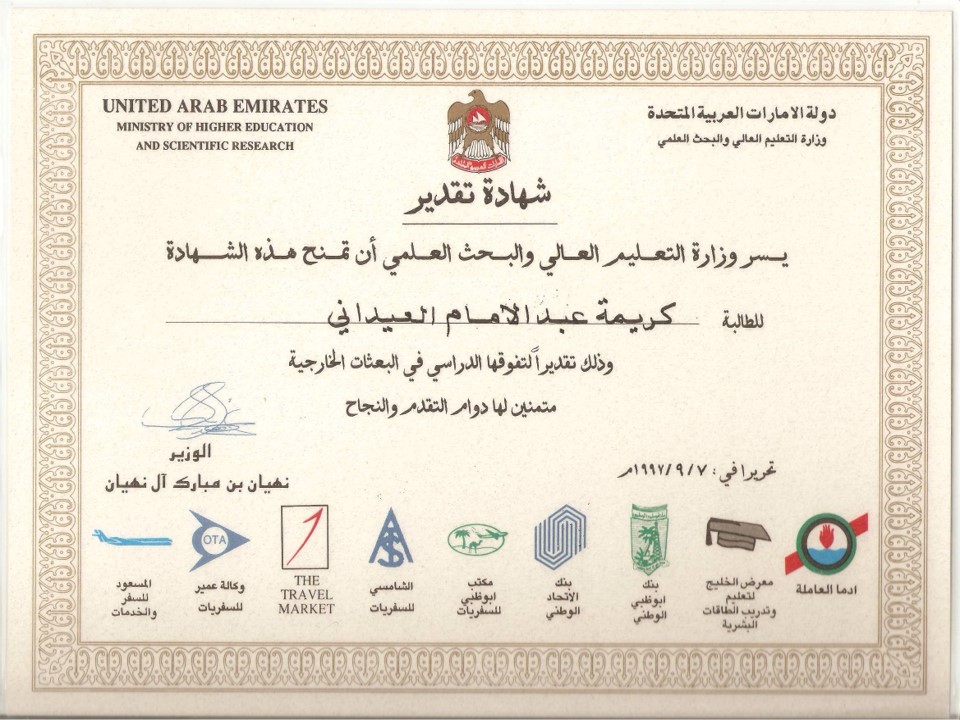 شهادات التكريم و الجوائز